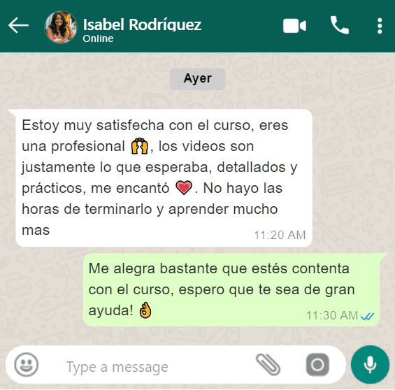 La modalidad del programa es totalmente virtual, en el momento en que realizas tu pago, recibirás un correo electrónico (el mismo con el que hiciste la compra) con las instrucciones para poder entrar al área privada de alumnos. Podrás estudiar este curso dentro de la misma plataforma de Hotmart, donde realizarás el pago. Tendrás ACCESO DE POR VIDA, incluyendo las actualizaciones.