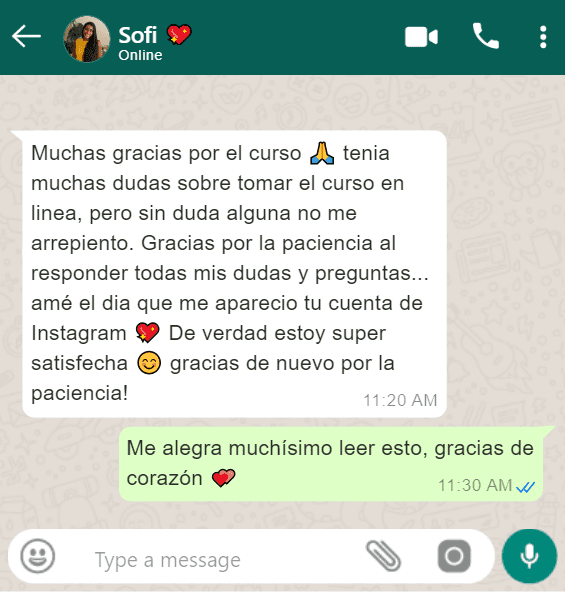 Un programa como este en modalidad presencial podria costar diez veces más de lo que vas a pagar acá, podrás ver el contenido cuanto tú quieras y aclarar cualquier duda por medio del grupo privado de Telegram, Así que estas ahorrando dinero, tendrás libertad en la modalidad de estudio y no estarás sola en ningún momento.
